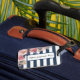 Etiqueta de bagagem divertida de marinheiro azul e branco com flores. Sua informação foi inserida no verso. O ditado pode ser mudado para o que você quer.