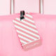 Esta moderna etiqueta branca com risca branca, rosa-rosa-esbranquiçada, com nome e endereço, é perfeita para o viajante elegante. Opção de presente de excelente para mãe, filha ou amiga. Use o botão azul "Personalizar" para adicionar suas informações. Arte original do Ana Garza/Kardz Studio. Se tiver alguma pergunta, entre em contato comigo através do bate-papo Zazzle.