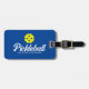 Pickleball amante da bagagem de viagem para bolsas e malas. Etiqueta de bagagem personalizada com logotipo de bola amarela e texto de script. Ideia divertida de presente de Festa de aniversário para fã, jogador, treinador esportivo, pai, mãe, esposa, marido, adolescente etc. Mude o logotipo e o fundo da bola para qualquer cor. Personalize com sua própria citação engraçada ou nome do grupo.