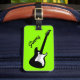 Etiqueta de viagem de guitarra para guitarrista. Etiqueta de bagagem verde neon para guitarrista, professor de música, músico, artista, artista, orquestra, banda, guitarrista, estrela do rock, DJ, amante de música, casal etc. Design personalizada de instrumentos modernos com tipografia na moda. Modelo personalizável com nome, endereço, citação ou slogan personalizados e cor de fundo. Adequado para homens, mulheres e crianças. (rapazes e raparigas). Design duplo. Nome de etiqueta personalizado para bolsas, capas e malas.
