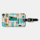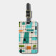 Essa etiqueta personalizável de grade retrô e estelar bagagem é onde o estilo vintage atende aos dias modernos. Apresenta um fundo de cor creme com kitschy, quadrados fora de quilter e retângulos em verde, turquesa, Este azul claro, laranja e verde de abacate. Os blocos brancos de cor são sobrepostos são trabalhados em algumas das interseções de grade. Há também retângulos pretos com linhas verticais e horizontais pretas formando um padrão de grade. designs e quadrados pretos de starburst colocados esporadicamente através desta tapeçaria de cores moderna do meio século. O lado oposto tem um fundo turquesa e está pronto para você se personalizar. Peguem suas botas de partida e fundos de sinos e desfrutem disso nos anos 60.