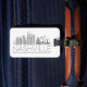 Uma etiqueta de bagagem única representando a bela cidade de Nashville, Tennessee. Esta etiqueta apresenta uma ilustração estilizada do horizonte único da cidade com seu nome embaixo.