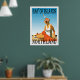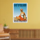 Um poster retrô que nunca foi até agora. Uma recriação de um velho poster. Uma cena de praia do estilo da Baía das Ilhas Vintage a partir da era da arte deco. Cores brilhantes com uma mulher na praia a tomar banho de sol com um cobertor vermelho e um boné de bolinhas tipo flapper. Exclusivamente por Zazzle.com/Retro_Art Store.