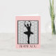 Cartão de agradecimento para professor de dança de ballet. O texto na frente diz obrigado. Dentro diz: obrigado por ser um professor tão maravilhoso. Você pode personalizar o texto para dizer o que desejar. O design na frente do cartão é uma silhueta de uma bailarina posando nas pontas dos pés com as mãos levantadas acima da cabeça. Cercada por um padrão de mandala em preto e branco com flores e coração com aspecto de renda.