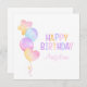 Cartão de aniversário infantil com balão de aquarela colorido com balão em forma de coração e estrela e texto colorido vibrante "Feliz Aniversário".