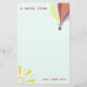 O papel dos artigos de papelaria que caracteriza uma ilustração de um balão de ar quente no direito superior e no sol saiu no fundo. Personalize com seu nome no vermelho. O fundo é claro - azul.