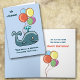 Aqui está um cartão de aniversário de criança que você pode personalizar. Apresenta uma imagem de desenho animado de uma baleia azul com balões de aniversário de cor brilhante na frente. O texto na frente diz "Olá Jason! Esta baleia está trazendo balões à sua maneira..." Na dentro é a mesma imagem de balão, com as palavras, "...para dizer que esperamos que você tenha um aniversário muito feliz!" Facilmente personalizado para dizer o que você quiser.