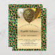 Para um aniversário de 21 anos (ou qualquer idade) elegante. Um fundo com estampa de leopardo, onça-pintada, verde esmeralda e dourado. Uma moldura e balões dourados. Personalize e adicione um nome, idade 21 e detalhes da festa. O nome é escrito com um estilo de letra manuscrita