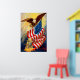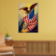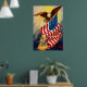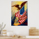 Bald Eagle 4 de julho poster vem com uma bela águia voadora calva no ar segurando em uma bandeira americana com raios solares brilhando nele. Esta é uma bela foto nesta poster