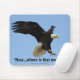 Uma águia careca muito poderosa chega para pousar, talvez ele veja seu lanche após o noom.
