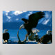 Bald Eagle, em um poster de log oceânico, vem com uma bela águia-careca em um log na praia com o oceano e a montanha no fundo do oceano e outras águias ao seu redor.. esta é uma bela foto neste poster