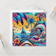 Psíquica, rosa, azul, laranja e rosa, representa um veleiro no oceano e ondas coloridas e palmeiras.