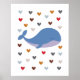 Apresentando uma baleia e poster de berçário de corações coloridos. Esta design neutra vai adicionar um toque de charme náutico ao seu bebê, bebê, e a toda a sua casa. Perfeito para chá de fraldas ou presente de aniversário para recém-nascidos. A baleia e os corações fofos modernos são um ajustado perfeito para uma variedade de salas de infantários e de brincadeira.