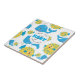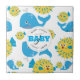 Adorável padrão para bebês com desenhos de baleia azul e baiacu amarelo com pontas azuis e um crachá redondo com um nome de bebê monograma. Design de bebê bonito e colorido. Personalize alterando o nome ou removendo o texto e o crachá. Clique em personalizar para adicionar mais seu próprio toque.