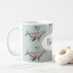 A baleia e o bebê com corações de pulverização agridem, perfeito para uma bebida de relaxamento com seu bebê. Para a personalização.