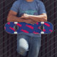 baleias vermelhas no skate azul