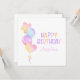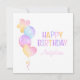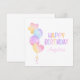 Cartão de aniversário infantil com balão de aquarela colorido featuring coração e balão em forma de estrela e texto colorido vibrante "Feliz Aniversário".