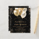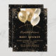 Para um Chá de fraldas elegante, neutro em relação ao gênero. Um fundo na moda preto. Decorado com brilho de ouro escuro, faíscas e balões. Personalize e adicione um nome, detalhes da parte. O nome é escrito com um script de estilo manuscrito