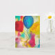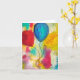 Design de aniversário colorido com balões vermelhos e azuis vibrantes criados por Kathleen Tennant.