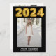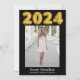Este cartão de anúncio de formatura do ensino médio apresenta as fotos do seu filho(a) e pode ser facilmente editado. Você pode personalizar e criar facilmente cartões de formatura lindos para seus alunos com este cartão de anúncio de cerimônia de formatura com 5 fotos. 2024 está escrito em fonte de balão dourado.