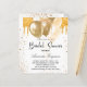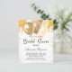 Um fundo branco chic. Decorado com pingos de ouro falso, aparência de pingar tinta e balões. Personalize e adicione um nome e detalhes da parte. O nome é escrito com um script de estilo manuscrito