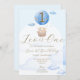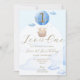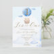 O tema do urso azul crianças primeiro aniversario de convite para design de de apresenta adoráveis ursos bebês em um balão de ar quente, nuvens azuis fundo com arco branco e fonte de caligrafia dourada. Este adorável convite para o aniversário de criança moderno é a escolha perfeita para o primeiro marco do seu filho.