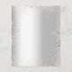 Para uma Quinceañera elegante, aniversário de 15 anos. Um fundo metálico prateado falso. Decorado com rosa dourado e gotas de glitter prateado falso, efeito de tinta pingando e balões. Personalize e adicione um nome e detalhes da festa. O nome é escrito com um estilo de letra manuscrita