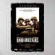 A vintage-style movie poster for "Band of Brothers" features four soldiers in military uniforms and helmets, looking intently. The poster has a distressed, textured border and lists cast and crew