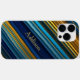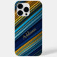 Maleta Máx. iPhone 14 Pro, Dourada/Azul Contemporânea, faixa de Abstrato, gabinete. Essa capa de telefone de ouro e abstrato azul moderna listras iPhone 14 é perfeita para quem admira cores e linhas clássicas, mas com uma apresentação de tendências. Além disso, esse design pode ser facilmente transferido para outra capas de iphone, se desejado. Seu nome e sua escolha de fontes podem ser inseridos facilmente usando a ferramenta design do Zazzle.