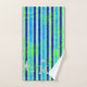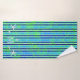 Azul colorido de vidro do mar e lençóis de banho listrados verdes para o seu banho de praia ou área de chá. Criado em tons estilhaçados de mariscos verdes e azuis marinhos com contrastes brancos e marinhos. Acentuado com estrelas e seu monograma pronto para edição no editor do Zazzle. Escolha entre um item de solteiro e um conjunto. Veja o tapete de banho e outros itens de decoração correspondentes em Camp_and_Cottage no Zazzle.