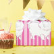 Folhas rosa-quentes de papel-presente da Pomerânia listras-cor-de-rosa-quente Cão-pano-cão Papel-Pom-cão Enrolador de papel-presente listras-rosa-quentes silhueta. Design de Arte por Ines Miller.