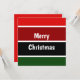 Um padrão horizontal vermelho e verde riscado e o texto: Feliz Natal. Você pode clicar em personalizar e editar o texto. Escreva 2 palavras em uma linha e elas aparecerão em duas linhas.