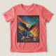 Este trabalho de arte vibrante e dinâmico representa uma poderosa águia careca a subir sobre uma bandeira americana, colocada contra um pano de fundo de cores ousadas e pinceladas de abstrato. A imagem evoca um sentido de patriotismo, liberdade e orgulho nacional.