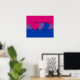 Papel poster (Semibrilho) com bandeira do orgulho da bissexualidade com faixas cor-de-rosa, roxa e azul, design de padrão listrado com corações, design de orgulho duplo