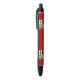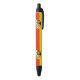 Caneta com pavilhão do Sarre; design com tricolor horizontal a preto, vermelho e amarelo (ouro), com casaco de armas do Estado no centro