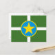 Cartão postal com a bandeira de Jackson, Mississippi; bandeira verde com estrela amarela em círculo azul