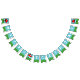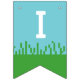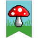 Uma bandeira do aniversário do prado do cogumelo do pixel. Cada bandeira tem um céu azul e uma grama verde do pixel. "O feliz aniversario" é escrito no texto branco, com uma letra em cada bandeira. Estas letras podem ser editadas se for necessário. As bandeiras do espaçador têm um cogumelo vermelho do pixel do agaric de mosca. Ideal para partidos temáticos do gamer retro.