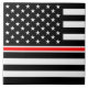 A bandeira da Linha Vermelha Fina é um símbolo de apoio aos bombeiros. É uma versão modificada da bandeira americana, onde as tradicionais faixas vermelhas são substituídas por faixas pretas, e uma única faixa vermelha permanece. Esta faixa vermelha única representa a bravura e o sacrifício dos bombeiros. - A bandeira é frequentemente exibida para homenagear os bombeiros falecidos, mostrar apoio aos bombeiros ativos e aumentar a conscientização sobre os perigos do trabalho. É uma forma de expressar gratidão pelos bombeiros que arriscam suas vidas para proteger as comunidades. - É geralmente entendido como um símbolo mais recente de apoio aos bombeiros. Ela surgiu como uma forma de homenagear e reconhecer os sacrifícios feitos pelos bombeiros, assim como a bandeira da Linha Azul Fina homenageia as forças da lei. - O design é simples: uma bandeira americana preta e branca com uma única faixa vermelha em negrito. Esta linha vermelha única simboliza a coragem e a dedicação dos bombeiros que arriscam suas vidas para proteger as comunidades. É uma representação visual da "linha vermelha fina" que fica entre o caos e a segurança. - Embora as origens exatas da bandeira possam ser menos documentadas do que outros símbolos, seu significado e impacto são claros. É um símbolo de respeito, gratidão e apoio aos bombeiros, um lembrete de sua bravura e do papel vital que desempenham na sociedade. - Esta obra é inelegível para direitos autorais