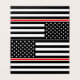A bandeira Thin Red Line é um símbolo de apoio aos bombeiros. É uma versão modificada da bandeira americana, onde as tradicionais faixas vermelhas são substituídas por faixas pretas, e uma única faixa vermelha permanece. Esta faixa vermelha única representa a bravura e o sacrifício dos bombeiros. - A bandeira é frequentemente exibida para homenagear os bombeiros falecidos, mostrar apoio aos bombeiros ativos e aumentar a conscientização sobre os perigos do trabalho. É uma maneira de expressar gratidão pelos bombeiros que arriscam suas vidas para proteger as comunidades. - É geralmente entendido como um símbolo mais recente de apoio aos bombeiros. Ela surgiu como uma forma de homenagear e reconhecer os sacrifícios feitos pelos bombeiros, assim como a bandeira Thin Blue Line homenageia as forças da lei. - O design é simples: uma bandeira americana preta e branca com uma única faixa vermelha em negrito. Esta linha vermelha única simboliza a coragem e a dedicação dos bombeiros que arriscam suas vidas para proteger as comunidades. É uma representação visual da "linha vermelha fina" que fica entre o caos e a segurança. - Embora as origens exatas da bandeira possam ser menos documentadas do que outros símbolos, seu significado e impacto são claros. É um símbolo de respeito, gratidão e apoio aos bombeiros, um lembrete de sua bravura e do papel vital que desempenham na sociedade. - Esta obra não é elegível para direitos autorais e, portanto, está em