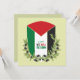 "A bandeira palestina cercada por ramos de oliveira com a frase 'Nós Iremos Retornar."