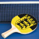 Paddle ping pong com bandeira variante de Baden-Württemberg; design com duas bandas horizontais de preto e amarelo (ouro) e emblema com blindagem com três leões pretos no centro