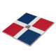 Esta design apresenta a bandeira da República Dominicana (em espanhol, República Dominicana), que é um país localizado na ilha de Hispaniola, no arquipélago das Grandes Antilhas da região do Caribe. A República Dominicana ocupa os cinco oitavos orientais da ilha, que partilha com o Haiti. O idioma oficial do país é o espanhol. A capital e maior cidade da República Dominicana é Santo Domingo. A bandeira da República Dominicana é vermelha, branca e azul: o azul significa liberdade, o branco para salvação e o vermelho para o sangue dos heróis. No centro da bandeira está o casaco de armas da República Dominicana, que inclui o lema "Dios, Patria, Libertad" ("Deus, Pátria, Liberdade").