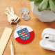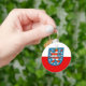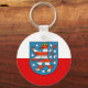 Chaveiro de botões com bandeira variante da Turíngia; design com duas bandas horizontais de vermelho e branco e emblema com leão no centro