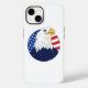 Belo design de desenho animado americano, com orgulho de águia-calva em forma circular sobre o fundo da bandeira nacional americana.