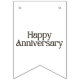 Esta bandeira apresenta as palavras "Feliz Aniversário" em uma fonte de impressão única com letras douradas e contorno preto. Todas as bandeiras têm impressão unilateral segura para uso ao ar livre, feitas de plástico poliestireno resistente e corda de plástico grossa, tendo (16) bandeirolas de cauda de andorinha de 5,5" x 8" em uma corda de 1,8 metros de comprimento.