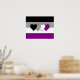 Poster Paper (Semi-Gloss) com a bandeira do orgulho de assexualidade com o padrão preto, cinza, branco e roxo com corações, ás ace orgulde design