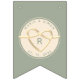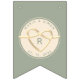 Bandeirolas de casamento verde sálvia simples, elegantes, minimalistas e modernas, com monograma e coração de corda dourada.