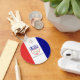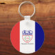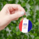 Chaveiro com pavilhão da cidade de Cleveland, Ohio; bandeira com três bandas verticais de vermelho, branco e azul com selo da cidade no centro