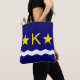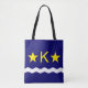 Saco com design com bandeira de Kinshasa, capital da República Democrática do Congo, bandeira azul com onda branca, duas estrelas ouros e letra "K" no centro
