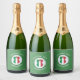 Rótulo de vinho ou garrafa para doação de presentes de Natal, ou, decoração de festas de Natal, mostra nosso anjo vestindo a bandeira da Itália. O anjo de Natal da Bandeira italiana é encontrado dentro a um círculo branco e fractal de quadrados rabugentos. O fundo é um quadrado fractal verde. Adicione seu próprio texto ou personalize com um nome e o ano. A bandeira é um tricolor de vermelho, branco e verde, muitas vezes chamado IL Tricolore.